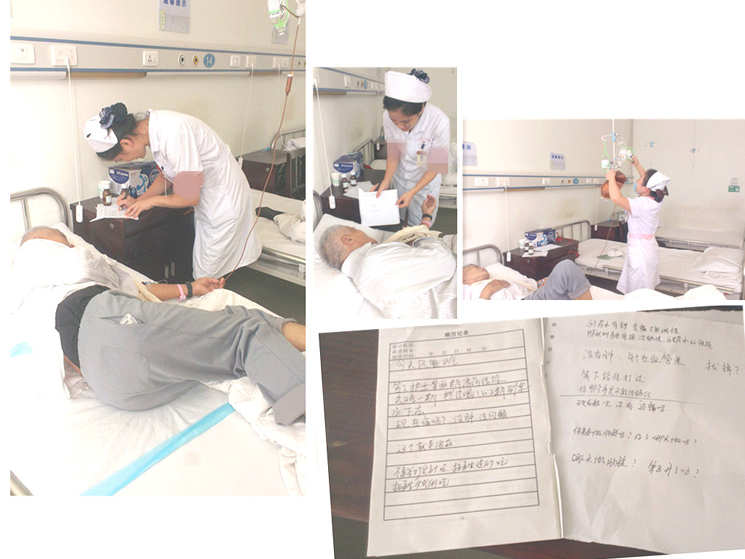 老人姓涂,是由于腹痛腹胀收入住院的。涂老住院期间,无论是医疗护理,还是生活起居,我们都格外细心周全,关怀备至。王爱瑶是他的管床医生,虽然涂老耳朵不方便,王医生通过文字的形式详细地“询问”了病情,耐心地“解答”病人提出的问题,还与病人共同“商讨”治疗方案。在护理方面,我们更是感受到了不小的责任和压力。杨建英护士长第一时间到病房了解病人情况。她提出,鉴于涂老的特殊性,责任护士需建立一系列防范措施:防跌到、防坠床,防走失等等。她特别嘱咐护士们一定要好好的悉心照顾他,让他感受到科室对他的关心,体会这里家一般的温暖和舒适。每每到了开饭时间,护士们就准时帮涂老打好可口的饭菜;医生开出检查通知单,我们热情地护送患者检查;输液时,护士们总会到涂老病房多巡视几遍,并随时询问是否有任何不适;老人的头发长了,我们为老人联系上门理发师,老人的指甲长乐,责任护士帮涂老修剪指甲……对老人的种种关心,他看在眼里,记在心里。涂老是一个不善言词的人,每每看到我们为他所做的,老人都会露出赞许的微笑。同病房的其他病友都竖起大拇指直夸省人民医院消化内科的服务真是一流。