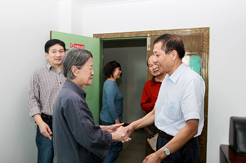 王平华是我院退休老职工,在医院工作了一辈子,曾任保健科科长,她今年已经93岁高龄,身体硬朗、口齿清晰。吴顺华主任一见到王老就上前紧紧握住她的手,代表组织向她表示诚挚的慰问,并送上慰问金。