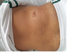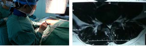 患者是一名19岁青年,因右下肢放射痛入院,疼痛的范围为大腿及小腿后外侧,入院前曾接受多方治疗,牵引、药物及其他理疗均未见效,疾病严重影响其生活及工作,基本只能卧床休息。MRI检查示L4/5椎间盘右侧巨大突出,压迫神经。对这类患者,手术指征明确,传统手术方式为腰椎后路L4/5开窗髓核摘除术,手术创伤大,术中需要剥离后方肌肉,手术时间长,出血量大,术后恢复慢而且有可能遗留腰痛症状。对于这样年轻的患者,可能会对其今后的生活造成一定的影响。经过充分的术前准备,陈钢主任为该患者在局麻下实施了椎间孔镜下椎间盘髓核摘除,通过在椎旁13CM处C臂机监视下穿刺,定位椎间盘及椎间孔位置,放入内窥镜,在直视下将椎间盘完全摘除。由于使用局麻,患者可以在术中和主刀交流,自诉症状缓解情况,该患者术中即感觉症状明显缓解,手术结束时,患者十分高兴,因为原来不敢活动的右腿活动自如了。该患者住院两天后即步行出院。与传统手术比较,因为没有剥离肌肉及切除椎板,手术切口只有1CM,大大减轻了患者的病痛及减少了常规住院的时间。