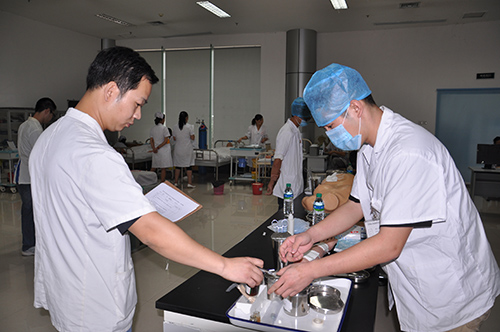 由于动员充分,同学们都有备而来,均在规定时间内完成了答题,整个考试过程秩序井然。在技能操作考核现场,主要对临床实践中各种常见病症及相关操作步骤进行考查,事先由同学们抽签决定各人的考核项目。考核专家本着“考核从严”的原则参照评分标准对实习生的实际表现进行逐项打分,并对同学们回答或操作错误的地方进行认真讲解和标准示范。