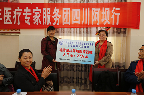 为扎实推进党的群众路线教育实践活动,贯彻落实团十七大精神,积极引导青年医务工作者走进西部、报效祖国、奉献社会,由团中央、中青科协共同组织的2013“科技之光”青年医疗专家青海、四川、贵州行于11月4日拉开帷幕,全国青联委员、江西省青联常委、我院重症医学科主任杨春丽同志一行13人组成的“科技之光”青年医疗专家服务团赴贵州、四川、青海三省开展为期一周的社会服务活动。