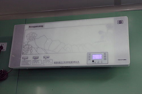 墙上的平板式空气消毒机,每天早晚定时进行空气消毒