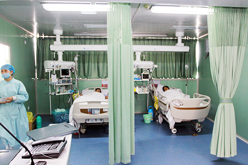 整齐划一的陈设,每张床周围的床帘保护病人隐私