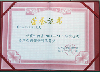 院报荣获2012年度江西省优秀连续性内部资料三等奖