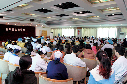 尊师重教是我国的优良传统,江西省人民医院护理部每年年中、年末都会举办师生座谈会,拉近老师和学生的距离,增进彼此了解,以为更有效地指导带教工作。12月10日下午,2013年年终师生座谈会拉开帷幕,外科总护士长万欢儿和干部病房总护士长吴克芹主持会议,护理部分管带教干事周清萍、各科室护士长、带教组长、实习组长、实习生代表百余人参会。