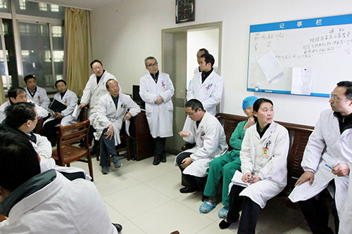 在CT室过道,看见走路一瘸一拐的神经外科孙卫副主任医师,他正在和骨科专家袁中平商讨手术方案,走进CT室控制中心,里面已经汇集了神经外科、整形颌面外科、骨科、放射科、神经内科等许多专家。孙卫马上就投入到紧张激烈的术前讨论当中,完全忘记了自己的病痛,当天晚上他一直在手术台上进行手术,手术持续到次日凌晨4点左右,而他前一天摔伤导致踝骨骨折,第二天要靠支具行走。