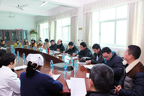 1月3日,九江市中医院党委书记毛亚南、副院长陈帮明一行12人来到我院,就党的群众路线教育实践活动开展情况进行考察学习。院党委书记雷良华、副院长李秋根、纪委书记周秋生出席座谈会。