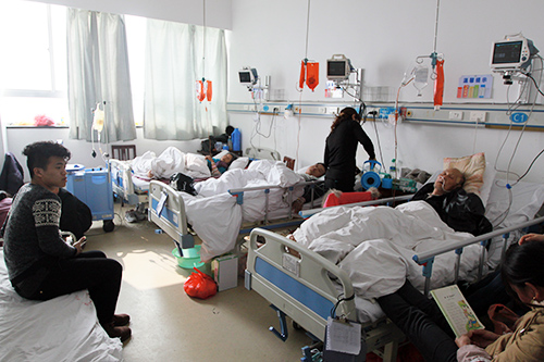 心内一科的医生办公室里犹如赶集,病人们一波接一波的进来问诊,还有许多病人在门外排队,这其中有不少患者准备出院,想再向医师了解一下病情或者准备开药回家。医生们忙的抬不起头来,也没有机会喝水,护士长表示:“心脑血管病的患者,如果不是危重患者,都想回家过年,我们充分理解他们的心情,为家属们提供了床椅,让春节陪护的亲属们有个安稳舒适的环境。”