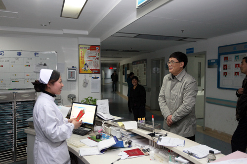 院领导们一边慰问,一边细心地询问值班人员节日期间的工作和生活安排情况,嘱咐大家在注意医疗安全的同时也要注意自己身体健康。