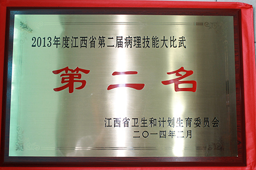 2013年度江西省第二届病理技能大比武优胜单位名单中,我院获得三级医院第二名。2013年度江西省第二届病理技能大比武“岗位技能标兵”名单中,我院刘秀娇获得技术组三级医院第一名。