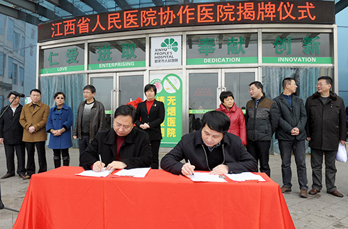李院长指出,新余市人民医院是一所知名的三级甲等综合性医院,与江西省人民医院建立‘协作医院’关系,双方将强强联合、互利共赢的。希望通过这次协作,进一步促进双方在管理、服务模式、科研教学、专科建设等方面的经验交流。根据实际情况,省人民医院将派眼科、妇产科、内分泌科、肾内科、神经内科各一名专家到新余市人民医院进行业务技术指导1年,并不定期组织有关业务人员去甲方进行业务技术指导、培训、义诊等。