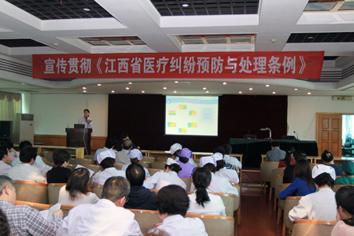 今年5月1日施行的《江西省医疗纠纷预防与处理条例》受到省人民医院医务人员热议,院领导高度重视这项法律条例,4月28日下午组织全院近300名职工集体学习。