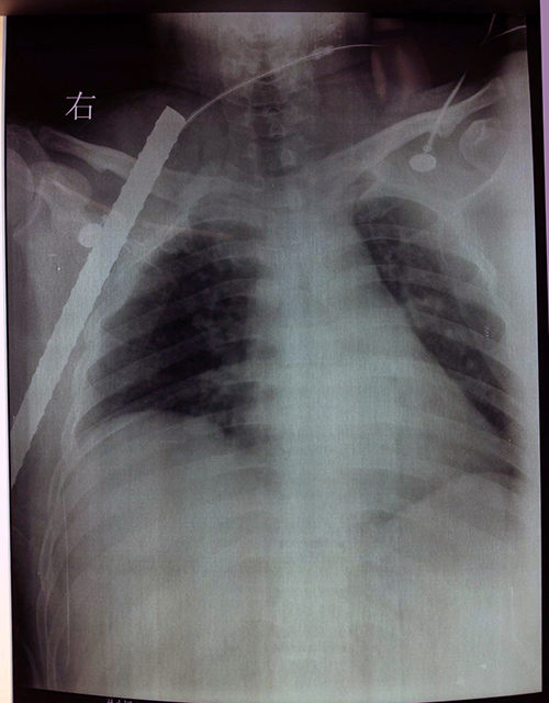 就在20个小时前,患者正在手术室里紧急抢救,一根拇指粗的螺纹钢筋经右腋窝、胸壁外侧达颈根部,突破层层血管和神经,深深地扎入患者体内约35cm。副主任医师李洪波介绍,右上肢附近有诸多血管和神经,如腋动静脉、锁骨下动静脉、颈外动静脉和臂丛神经等,血液循环非常丰富。“钢筋压迫的都是近心大血管,一旦受损,后果不堪设想”他介绍到。