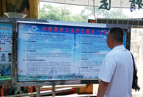 我院分别以转发文件、政治学习、院周会传达等方式向全院各科室干部职工、进修生和学生宣传贯彻“九不准”规定,同时按照省卫计委对学习教育覆盖面达到100%的要求,我院还特别制作了《加强医疗卫生行风建设“九不准”》宣传展版,并放至医院门诊大厅的醒目位置以供大家学习,提高全院干部职工知晓程度。