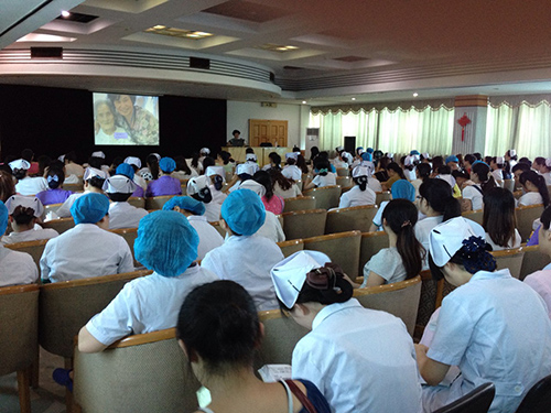 本次培训班共有400余位护士参加,培训内容丰富,有介护理论知识、国内养老现状、介护技术要领、现场模拟演示等,课堂座无虚席,老师讲课生动细致,学员听课兴致勃勃。据江西省统计局对江西人口变动情况抽样调查结果显示,2011年末,江西全省60岁及以上老年人口532.78万人,占总人口的11.87%,比上年末提高0.43个百分点,人口老龄化进程加快。通过培训有益提高护理人员的介护技术水平,并通过护理人员对患者及其家属进行宣教,使更多的家庭受益。