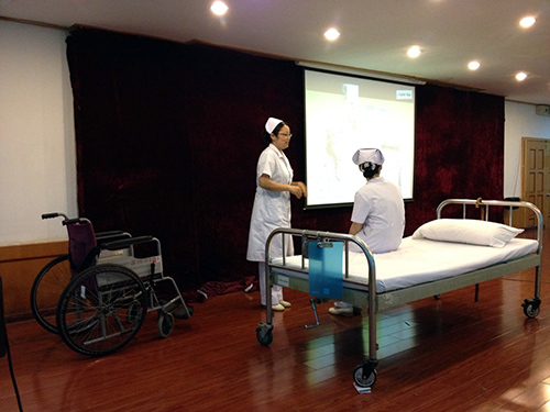 2008-2013年,江西省红十字会先后给我院6个名额赴日本进行为期一个月的介护技能培训。2010年在高干病房对陪护人员和病人家属进行过2期培训;2012年在东湖区养老院对护理员进行介护技术培训,得到病人及家属和养老机构的一致好评。