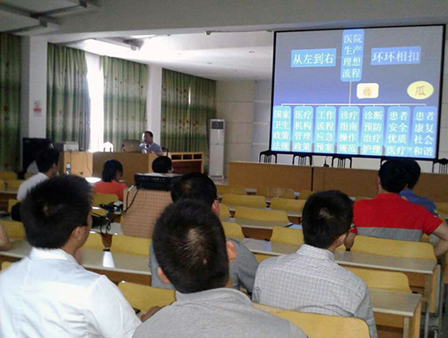 当天上午,我院专家抵达后,就来到县人民医院进行教学查房。王晓华、金成豪、张伟、袁中平等专家深入临床一线,看病查诊。当天下午,我院院感科副主任护师沈燕讲授了《医院环境清洁消毒管理》,干心内二科护士长叶春华讲授了《品管圈与护理质量的持续改进》,医务科长程宗佑讲授了《环节质量控制与医疗纠纷的防范》,方雁副主任医师讲授了《抗凝治疗的重要性及抗凝治疗的临床应用》。