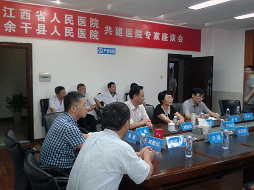7月2日下午,院领导雷良华带队,我院专家一行11人赴余干县人民医院开展省县共建医院交流活动。余干县副县长雷红霞、县卫生局、县人民医院主要领导出席座谈。