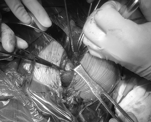 检查结果显示,患者腋窝大动脉完好,且血管位于异物后方,得知这些消息后,董谢平主任对该手术信心更足了,在各临床科室的配合下,15分钟内便完成患者抽血、心电图、胸片、术前谈话、备血等术前常规准备,术前董谢平主任医师、肖强副主任医师和漆启华主治医师反复讨论了手术方案,决定进行前路分离取出该异物。
