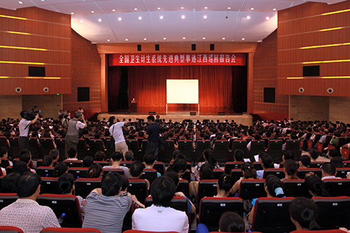 7月9日上午,“全国卫生计生系统先进典型事迹江西巡回报告会”在南昌市红谷滩会议中心举办,此次会议由国家卫生计生委主办,省卫计委副巡视员丰华出席。整个会议大厅座无虚席,我院宣传科组织15名医务工作者参加了此次报告会。