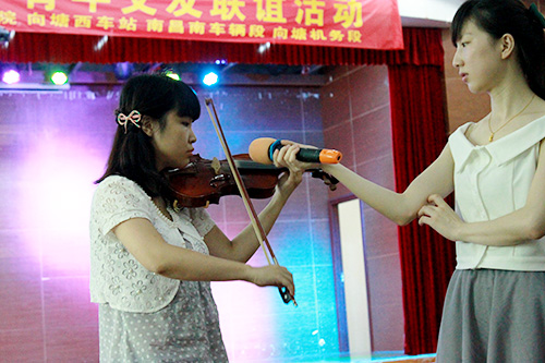 联谊活动分为上下午进行,上午的见面会以舞台表演形式进行。俊男靓女轮番上台进行了形式多样的表演,我院女青年表演了民族舞和小提琴独奏《雪之花》;南铁的小伙子们表演了吉他弹唱、独唱和双节棍等节目。游戏环节穿插其中,抱抱团、爱情圈圈、搬气球等游戏为活动增加许多看点,增进互动了解。到了经典爱情对白环节,不少青年鼓足勇气现场示爱,将联谊氛围推向高潮,现场掌声不断。