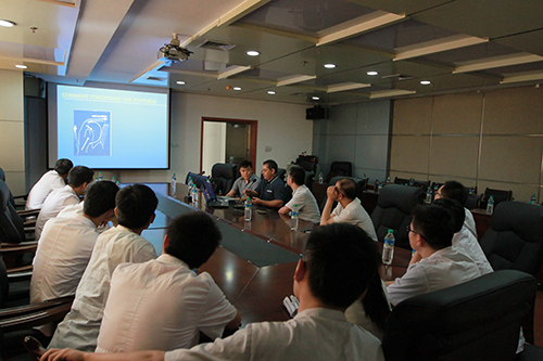 活动开始前,陈钢主任邀请弗朗索瓦·布吕树教授到骨一科病房查看了几个病人的病情,教授和几位骨科医师共同探讨了关于患者的手术方案,并对一些患者的治疗提出了宝贵的建议。随后弗朗索瓦·布吕树教授在会议室用图文并茂的PPT为大家详细介绍了“反向肩关节假体技术”和“关节镜下肩袖修复技术”,精彩的讲课内容与形象深入地分析让大家获益匪浅。最后,弗朗索瓦·布吕树教授还与大家进行了上肢创伤的病例讨论,在场的多位骨科医生就一些专业问题请教了弗朗索瓦·布吕树教授,教授都一一为大家详细解答,现场学术气氛活跃。