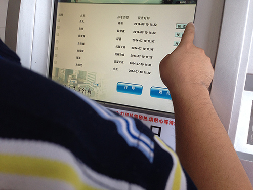 以往我院检验报告单由检验科工作人员统一打印,集中到报告单领取处发出。报告单领取处需要从大量报告单中逐一查找,从而容易出现报告单丢失、累积、混淆、信息泄露等情况。同时,领取报告单的人员集中,给患者带来诸多不便。为解决这些问题,进一步方便门诊患者就诊,院领导在银医通上线时,就专门指出了门诊检验报告自助打印系统上线的必要性,并采购了多台门诊检验报告自助打印系统的硬件。经过近半年的技术攻关,信息科成功协调了银医通系统软件承包商、检验系统的软件承包商和医院HIS承包商三家公司的技术力量,解决了门诊检验报告自助打印系统中的多家接口调用等技术困难,完成了门诊检验报告自助打印系统。