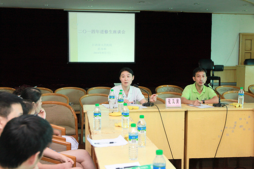 会上,进修生畅所欲言,各抒己见,积极与大家分享在我院进修期间的心得体会。他们充分肯定了我院的进修教学工作,认为我院是一个很好的学习交流平台,院内的教授和老师们具有丰富的知识,精湛的技术,通过学习使得他们的视野更加开阔,令他们受益匪浅。同时,进修生们对我院提供的生活设施、业务教学工作提出了许多宝贵的意见和建议,双方交换了意见和看法。