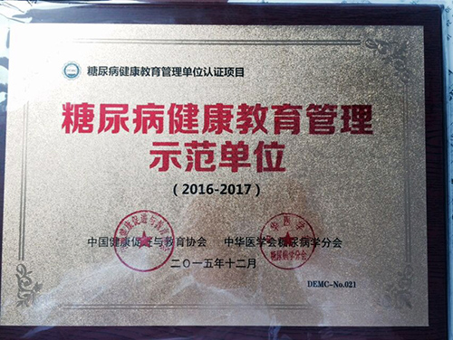 近日,内分泌科荣获了一份特别的礼物——由中华医学会糖尿病学分会、中国健康促进与教育协会颁发的“糖尿病健康教育管理示范单位”证书和牌匾。启动了为期两年的糖尿病教育管理单位认证项目,项目通过开展“专职糖尿病教育护士培训、认证”和“糖尿病健康教育管理体系建设与单位认证”等工作,着力于帮助医院解决糖尿病教育管理中实际存在的问题,提升医院糖尿病教育管理体系的标准化、规范化和系统化建设。