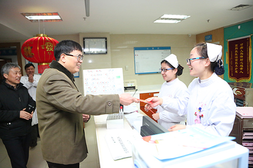 院领导在向职工拜年的同时询问了病情留院病人的病情状况、节日期间的排班情况,由于医院所肩负的特殊使命,节日期间还有一大部分员工放弃了与家人团聚共度春节的机会,继续坚守岗位,希望大家在岗位上过一个欢乐祥和的春节。同时也叮嘱大家,一定要注意医疗安全,为患者提供健康安全的医疗服务,让病友度过一个平安的春节。