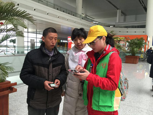 当前,临近2016年春运的尾声,南昌也迎来了春运期间最后的出行高峰。近日,在拥挤的南昌西站中,头戴小黄帽、身穿绿马甲的爱心春运志愿者随处可见,他们只为了一个目标:“献爱心、助旅客、送健康、保平安”。