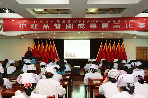 根据我院“开展护理品管圈活动工作方案”,护理部积极开展并推进“品管圈活动”。活动得到了广大护理人员的热情参与,在各个岗位颇具科室特色的各类品管圈,经过宣传动员、组织实施、推荐选拔,4月27日下午,护理部举办了品管圈成果展示比赛,各大科片区遴选的8个护理单元参加比赛,各科室护士长、品管圈圈长及圈员代表到场聆听。古金海副院长、三甲办胡建新副主任出席并担任评委,纪检监察室黄亚聪副主任全程监督以体现比赛的公正公平。