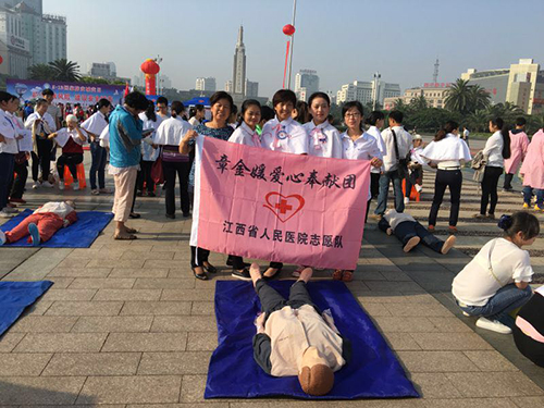 5月12日,护理部唐霞珠主任带领万欢儿、廖春红、徐习娟、江崇凤等代表的江西省人民医院志愿服务队来到南昌市八一广场,与章金媛爱心奉献团队等共同参加“减少灾害风险,建设安全城市”主题的5·12国家防灾减灾活动日。
