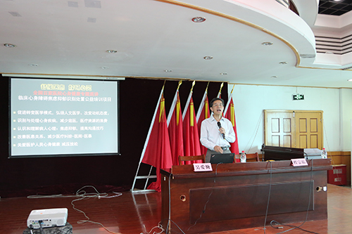 5月7日上午9:00,由国家卫生计生委疾控局、医政医管局、中华医学会精神病学分会等多家医学分会与全国百家综合医院联名发起的“舒放医患 解码心灵”——综合医院心理健康专题巡讲在我院举行,旨在缓解医护人员心理压力,减少心理疾病侵袭,减少和防止医患矛盾,构建和谐医患关系。