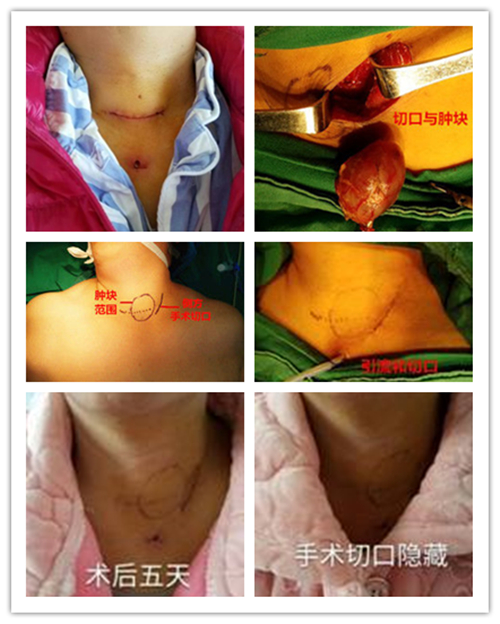 针对传统甲状腺手术治疗弊端,我院血管乳腺外科在姚武主任的带领下,不断创新手术方法,学习并接受国内先进医疗诊疗技术,成功在我院开展经胸锁乳突肌后缘斜切口行甲状腺肿瘤切除术。由于术中根据解剖结构,未离断颈阔肌及颈前肌群,因此局部瘢痕增生减少,术后未出现组织水肿和皮下积液、吞咽不适等不良现象。同时,该术式在保证手术安全的前提下,做到切口隐蔽,美容效果极佳,尤其适合中青年甲状腺肿瘤患者。