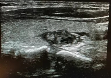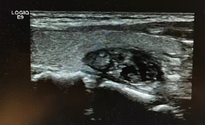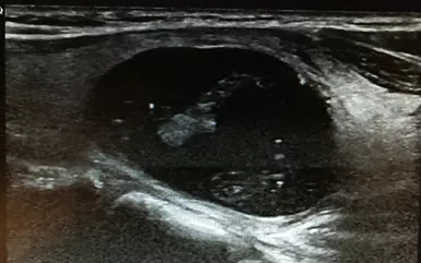 图5 甲状腺良性结节消融术后9月 完全消失,未见病灶