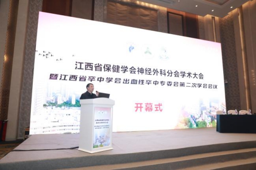 省保健学会神经外科分会主任委员、省人民医院神经外科科主任万登峰向大会致辞并承诺:利用好学会这个平台,团结广大会员,广泛开展业务交流和培训,努力提高学术和业务水平,共同为江西省人民群众健康保驾护航。