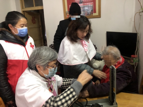 2021年1月23日周六上午08:30,和往常一样,江西省红十字志愿护理服务中心江西省人民医院分队一行5人,来到南昌市东湖区豫章街道东濠街社区,为那里的居民提供志愿护理服务,开展为高龄老人、残疾人、失能老人送温暖活动。