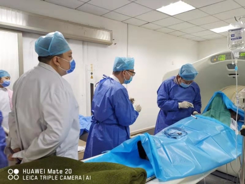 为使精准治疗新技术的开展站在更高的起点,在科主任姚伟荣主任医师的带领和推动下,肿瘤科派出多名业务骨干赴北京,广州,上海等全国顶尖医院进修学习。2021年2月6日,农历小年后的第一天,肿瘤科邀请我国消融领域的领军人物、肺癌消融国家标准制定者、国内第一部肺部消融治疗培训教材—《肺部肿瘤消融治疗》作者、山东第一医科大学附属第一医院肿瘤中心主任叶欣教授来我院指导,使我院该项技术的开展,一开始就站在“巨人的肩膀”上。