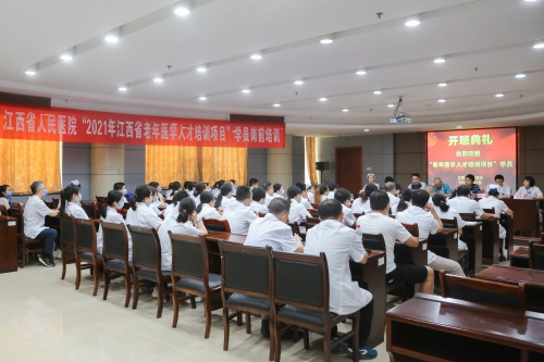 2021年7月8日下午,江西省首期老年医学人才培训项目在江西省人民医院顺利开班。省卫生健康委老龄健康处处长肖守渊、江西省人民医院副院长梁斌、省卫健委老龄健康处副处长乐云等出席,省医部分职能处室负责人、临床教学组长、带教老师和全体学员50余人参加。开班典礼由医务处处长邹伏英主持。