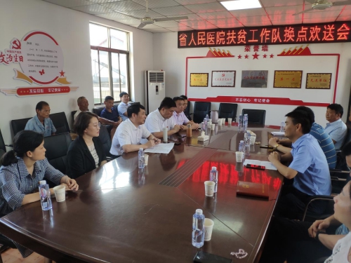 2021年7月13日,江西省人民医院党委书记李秋根、党委副书记黄清,党办、人事处负责人,第一批、第二批驻村第一书记等一行来到永修县立新乡鄢湾村参与第三批工作队驻村换点欢送会。永修县扶贫办主任郝仕贵、立新乡党委书记程振祁、鄢湾村党支部书记熊海生及村干部参会。