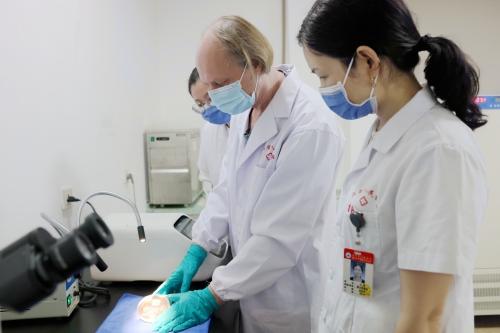 在院领导的大力支持下,外籍专家引进工作于2020年3月正式启动。当时因新冠疫情,引进过程可谓艰辛繁琐,办理相关手续前后费时近半年。后又因疫情防控需要,Oliver博士2021年1月10日从德国出发,旅途经过数次隔离和辗转,历时一个月终于于2月9日抵达医院。在我院宣传外事处、组织人事处、后勤管理处等各个部门努力协作下,2021年4月,为其办好居留证和工作许可证。