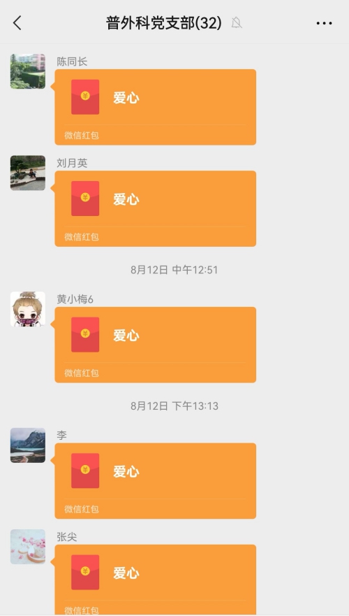 这群党员每个月自发的爱心接力已经持续了将近四年。每个月,随着群里一声号召,“同志们,献爱心了!”,一个个写着“爱心”的红包就在群里接力起来。40多个月的默契,无声的接力赛昭示着:虽然每个红包只有100、50元不等,但真情不断,“爱心”无价!