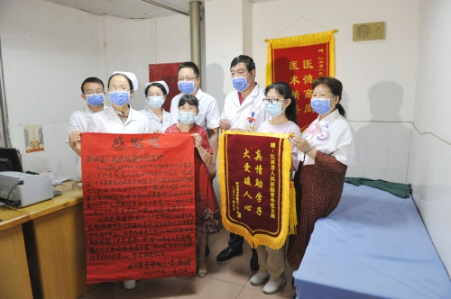 2021年8月17日下午两点半,一位准大学生小涂和她妈妈带着手写的红彤彤的大幅感谢信和锦旗,来到江西省人民医院普外科门诊231诊室,感谢一直帮助他们的万宇飞、陈晓亮、罗小江、徐习娟、黄小梅等外科总支的30多位党员。胃肠外科主任医师万宇飞正在坐诊,不少候诊的患者,路过诊室门口,投来赞许的目光。