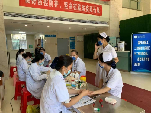 为做好本次献血工作,院长谭友文、副院长梁斌亲临现场提出疫情防控要求。上午8:00始,医务工作者分时段、分批次有序献血,避免了现场人员聚集。