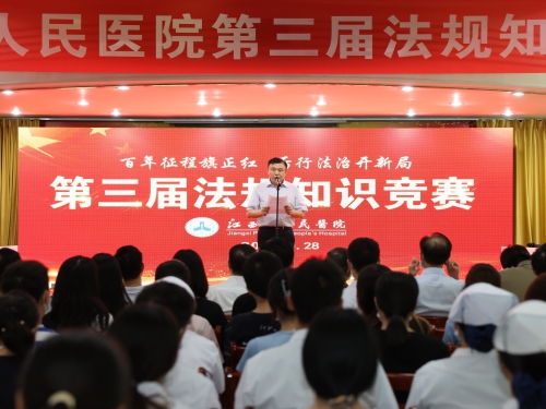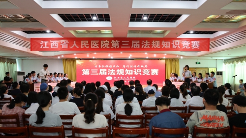 2021年9月28日,由院纪委主办的“百年征程旗正红 厉行法治开新局”第三届法规知识竞赛在江西省人民医院门诊十楼举行,省卫生健康委党组成员、省纪委省监委驻卫生健康委纪检监察组组长朱卫国,院党委书记李秋根,院党委副书记、院长谭友文,委直属机关党委专职副书记蓝希梅,党委副书记黄清等在院领导班子成员出席活动。