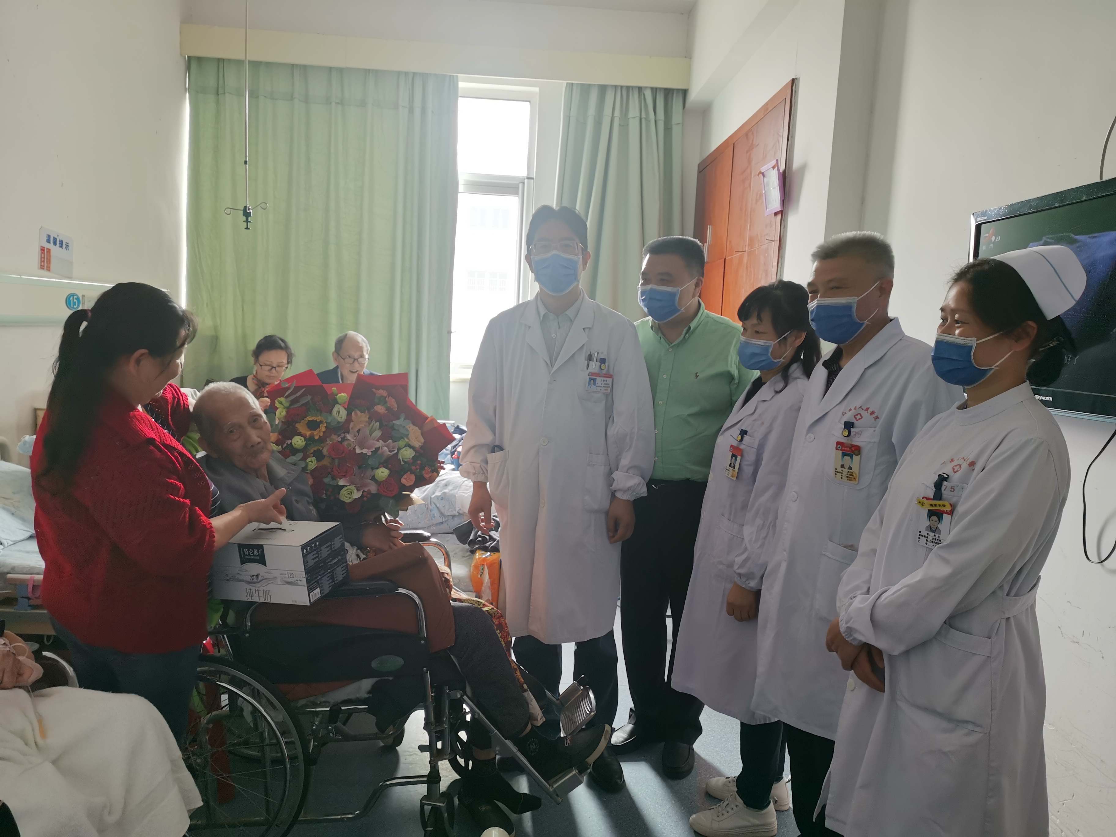 当日上午,江西省人民医院副院长王晓华率院工会、离退办同事走访慰问正在住院的我院百岁退休职工杨先模老同志,并致以节日的问候。王晓华关切询问杨老的身体状况、生活起居,祝福他健康长寿、寿比南山。