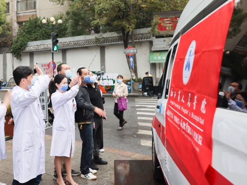 2021年11月4日9时,按照省卫健委部署,江西省人民医院(南昌医学院第一附属医院、南昌大学附属人民医院)派出负压救护车从爱国路院区出发,紧急增援上饶-铅山,执行铅山县和上饶市之间转运病人任务。省人民医院院长陈志平、副院长梁斌为驾驶员孙纬丞送行。