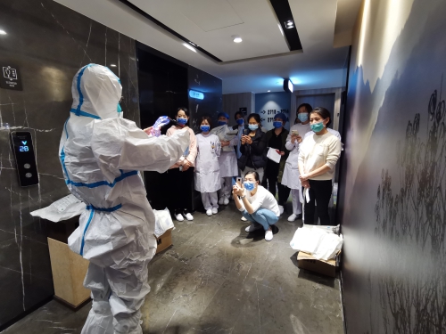 结束了紧张有序的培训演练工作工作后,当日19:20,省直核酸检测应急采样队领队、省人民医院副院长王晓华带队到各自驻地看望了南大一附院和南大二附院的支援上饶核酸检测队的队员,向他们表示慰问和关心,号召大家团结一致、认真履职、共抗疫情。