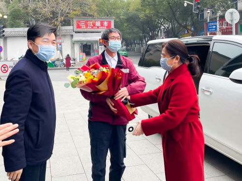 中午12时40,离家26天的内分泌·骨质疏松与骨病科副主任林安华主任医师、心身医学科刘得乐副主任医师、省心血管病医院胡林主治医师随队乘车返回南昌。受医院主要领导委托,副院长梁斌前往省胸科医院迎接3位抗疫医师,为他们献上鲜花,感谢他们在上饶接续战疫、敢于拼搏、勇于担当、善于奉献。